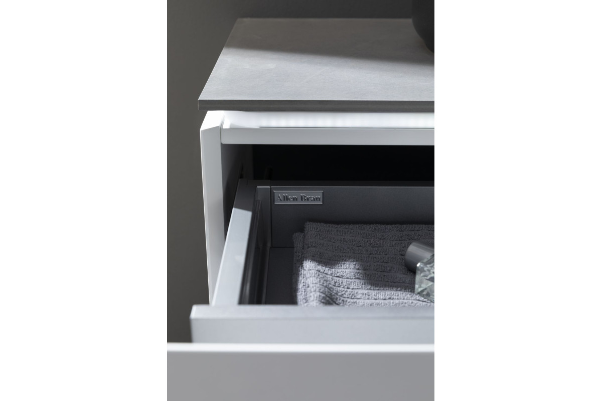 Выдвижные ящики с металлическими боковыми стенками в цвете серый металлик.