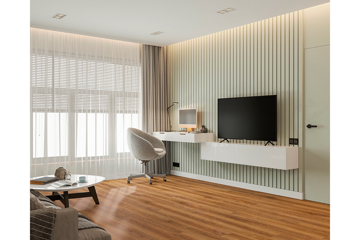 Главная особенность продукта — водостойкость. Покрытие гидрофобно, даже длительные контакты с водой не заставят панели впитать влагу. Благодаря надежной герметичной замковой системе просачивание воды к основанию исключено.