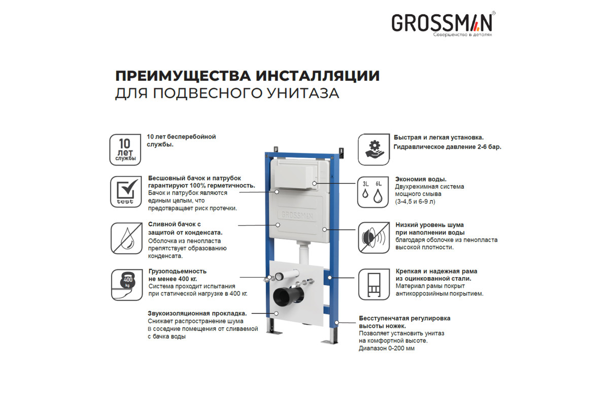 Инсталляция для подвесного унитаза Grossman 900.K31.02.000